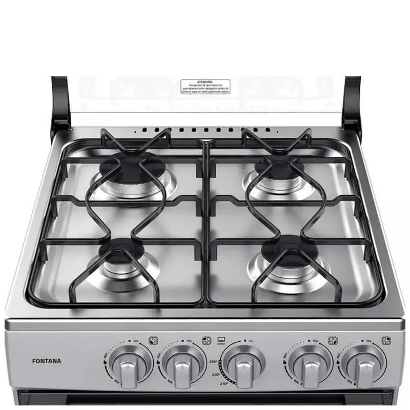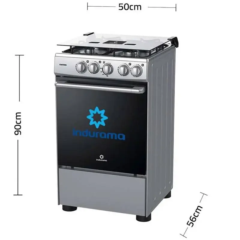 Indurama Fontana Cocina Gas 4 Quemadores Encendido Manual Vidrio Templado Gris